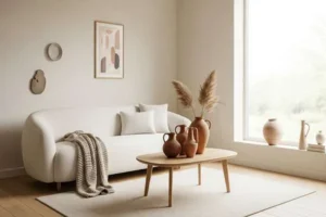 - بافت (Texture): پارچههای کتان، پشم، پوست و حصیر که به فضا عمق میدهند.